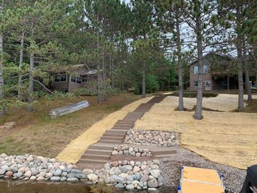 We can work with a variety of materials types when designing and creating hardscaping. This includes timbers, concrete, pavers, brick, or natural stone. Each of these materials offer a different style and aesthetic look. Depending on your own personal preference and budget constraints, we can help you determine which materials are best for your landscaping project.